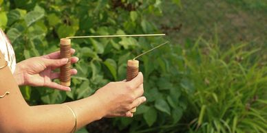 Le bâton, attribut de l'Enchanteur, il est la continuité de notre bras et nous permet de trouver un point précis pour l'implantation d'une construction, d'une pierre levée ou tout autre dispositif de dynamisation.